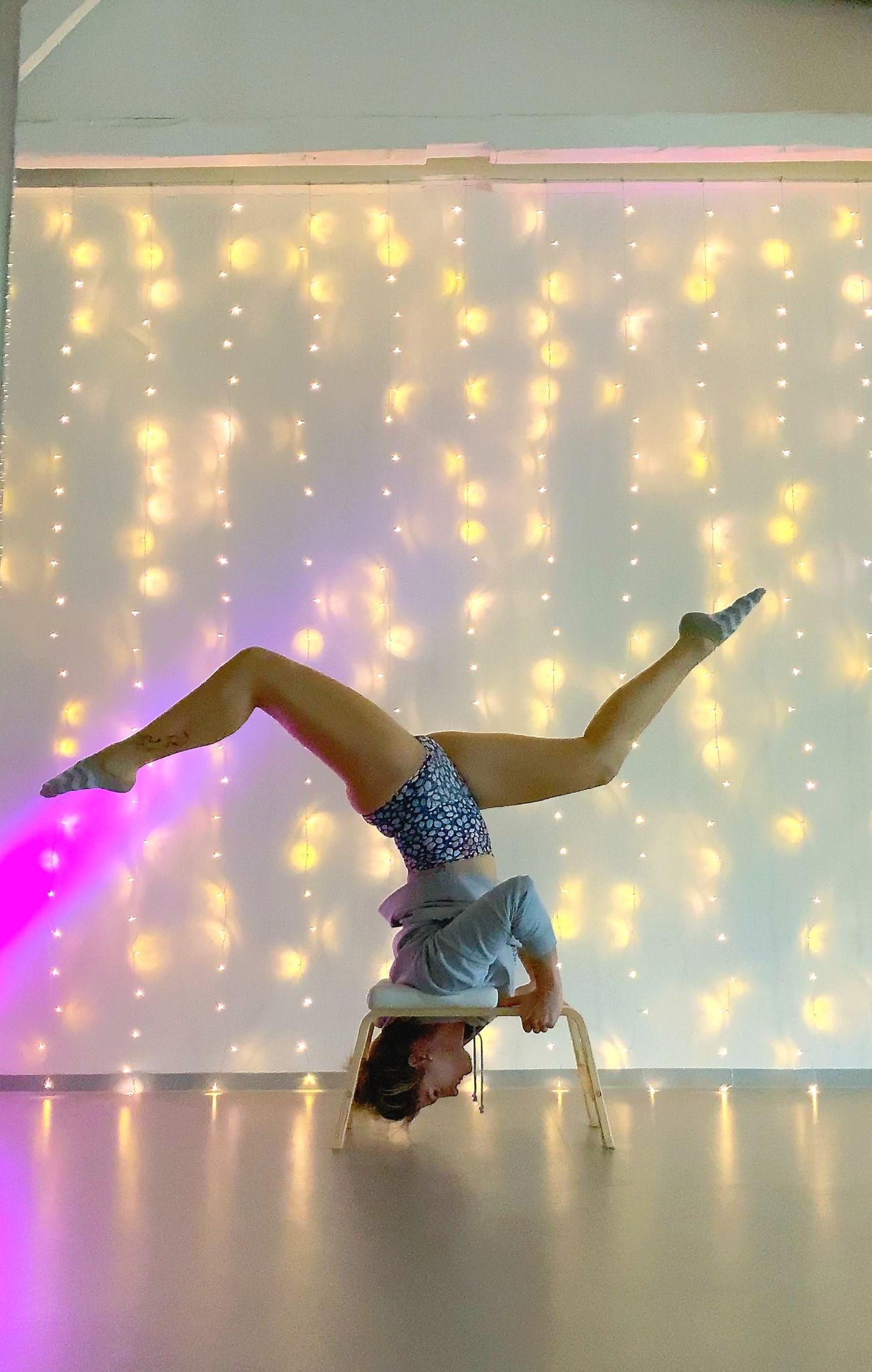 Wir probieren mit Spaß und Leichtigkeit kreative Übungsvarianten und die ersten Umkehrhaltungen.